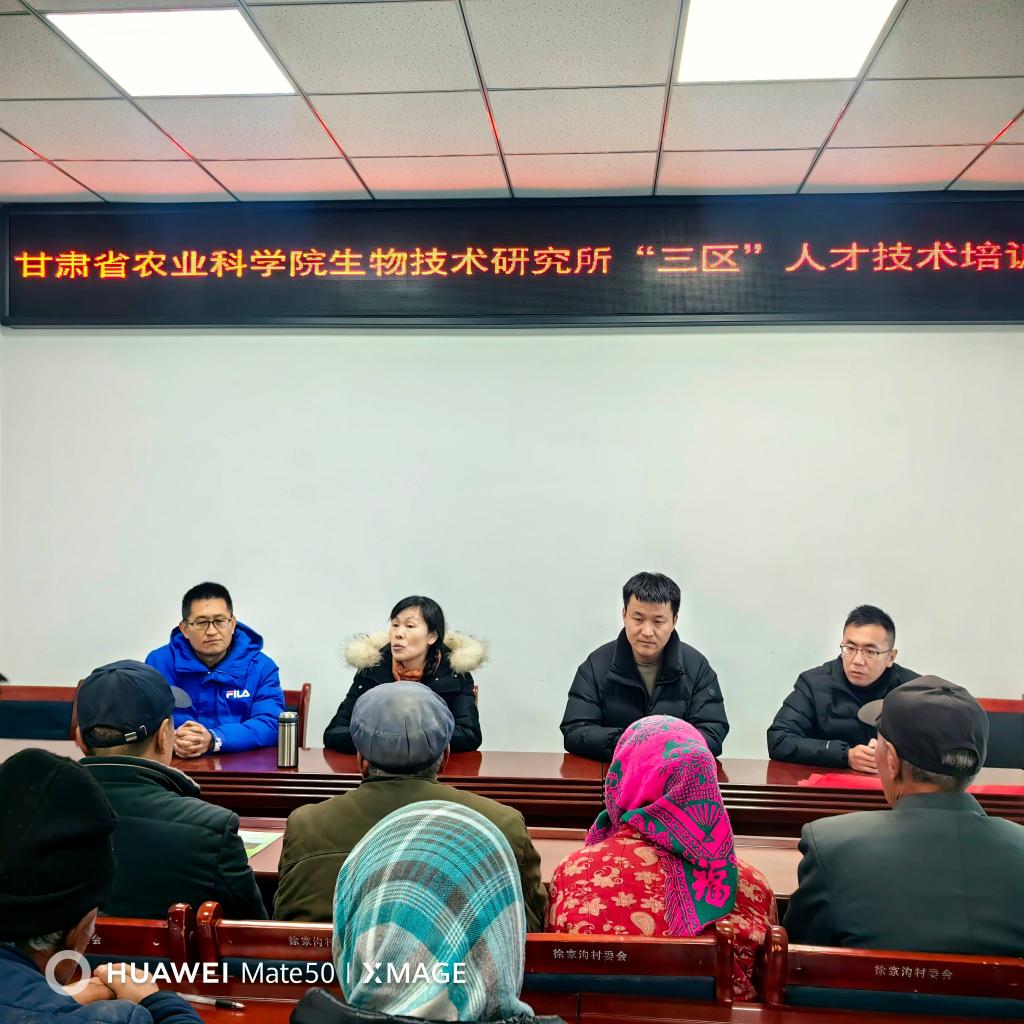 12月10日,生物技术研究所王立光、刘耀权等科技人员组成的“特色作物高产栽培三区服务团”赴永靖县徐顶乡徐家沟村开展“三区”科技培训。